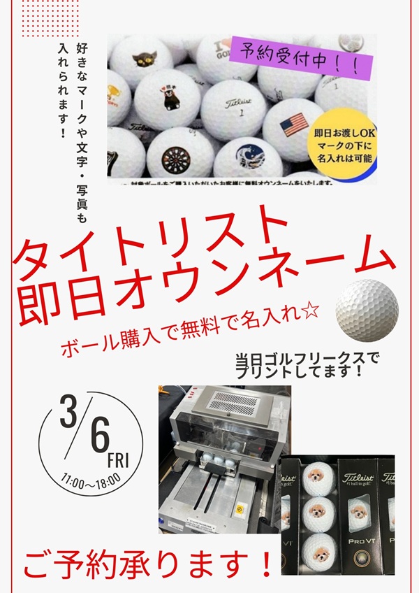 3/6(金)にタイトリストオウンネームイベントを開催致します☆