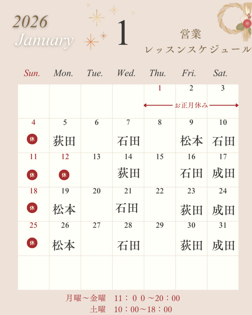 1月レッスンスケジュール掲載致します☆